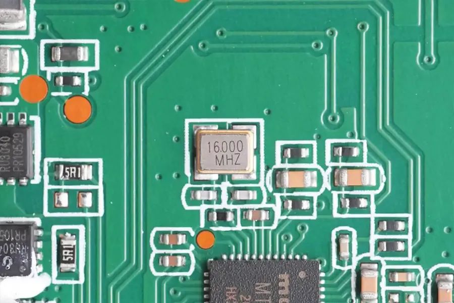 用于為無線充電主控提供時(shí)鐘的無源晶振,頻率為16.000MHz。用于定頻調(diào)壓降壓的兩顆MOS管,型號為RU3040M2,是一顆耐壓30V的NMOS,導(dǎo)阻為5.8mΩ,采用PDFN3333封裝。4R7電感用于定頻調(diào)壓降壓。無線充電功率級使用四顆MOS管組成全橋,型號均為RU3040M2。無線充諧振電容采用科雅ZZEC無線充專用CBB電容,規(guī)格為0.4μF 100V。