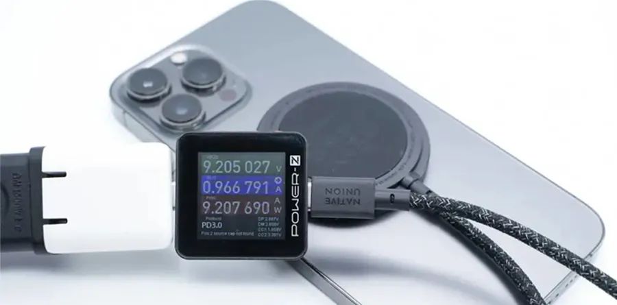 給iPhone 13Pro Max進(jìn)行無(wú)線(xiàn)充電,使用ChargerLAB POWER-Z KM002C測(cè)得輸入功率為9.2V 0.97A 9.21W。