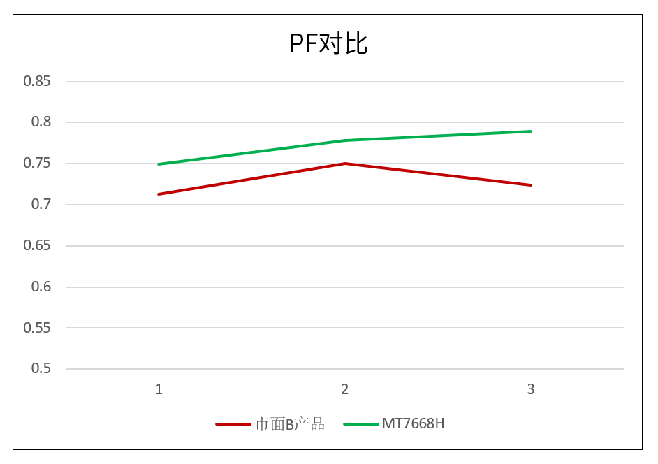 其中MT7668H是一款高PF值(PF>0.7)、高效率的無頻閃LED線性驅(qū)動(dòng)芯片,效率大于84%@AC230V,比市面B產(chǎn)品高4%以上。功耗的降低使MT7668H可以支持單面板PCB燈絲燈應(yīng)用,并且單面PCB板比市面B產(chǎn)品采用雙面PCB板成本節(jié)省0.1元(Size E27)。