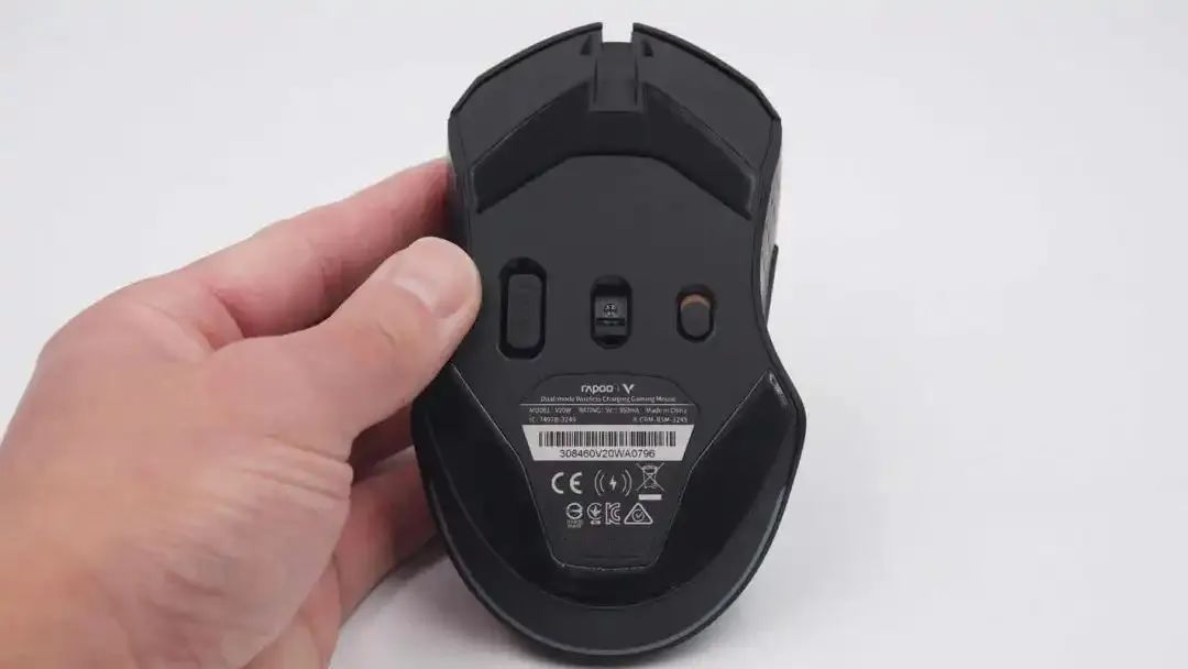 Rapoo V20W is a dual-mode wireless gaming mouse which incorporates battery, and supports wireless and wired charging.