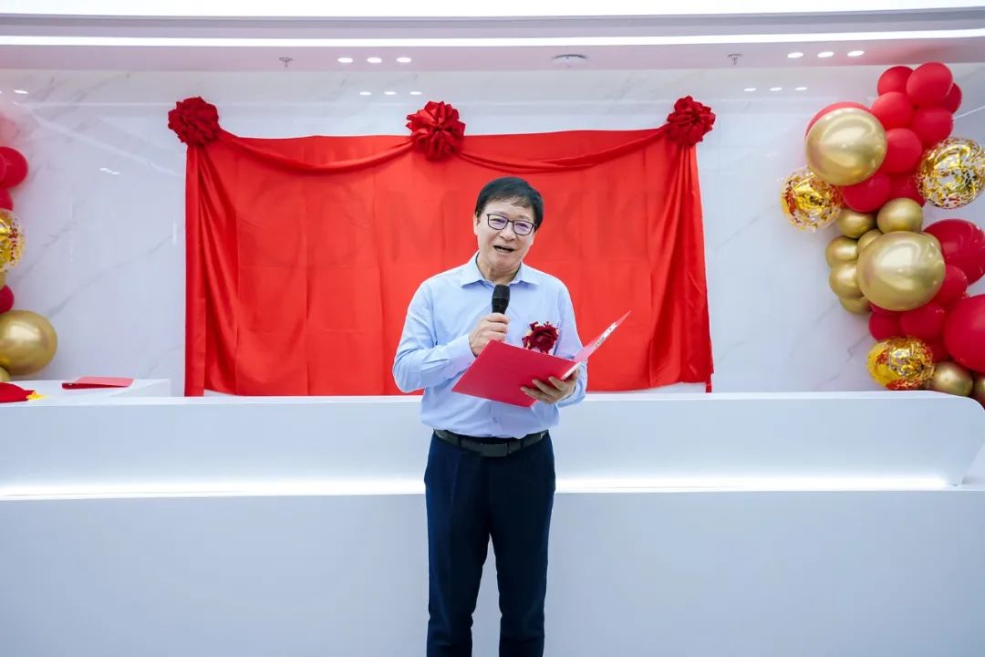 緊接著,董事長(zhǎng)與獨(dú)立董事共同為美芯晟新總部揭牌。紅綢翩然滑落,嶄新的標(biāo)識(shí)熠熠生輝!這一刻,紅綢落,新程啟!