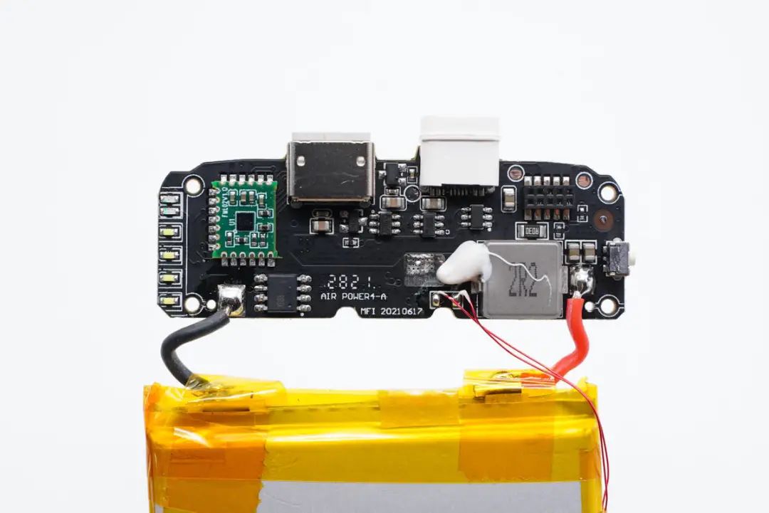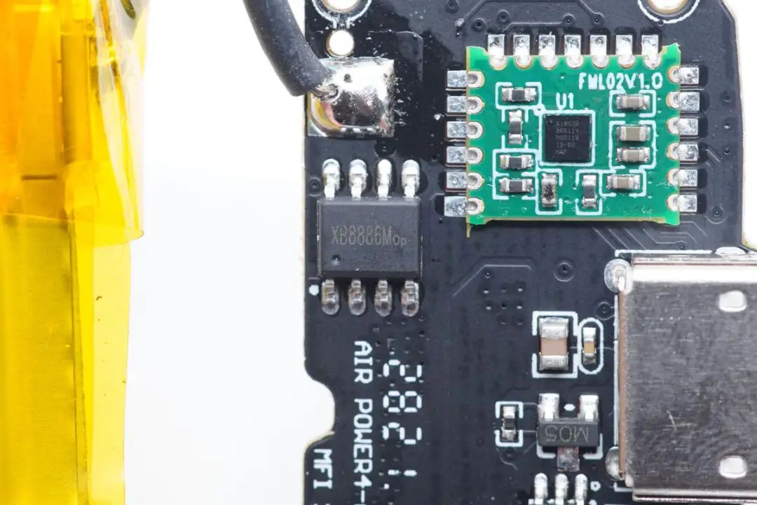 充電頭網通過拆解了解到,充電寶內置兩塊PCB小板,之間有泡棉支撐。無線充方案采用美芯晟MT5811,這是一款高度集成的無線充電發(fā)射芯片,符合Qi標準以及高達15/50W的輸出功率,還集成ARM M0 處理器,總的來說在體積、兼容性、性能、效率等方面的表現(xiàn)都很好,能夠滿足客戶的各種要求。