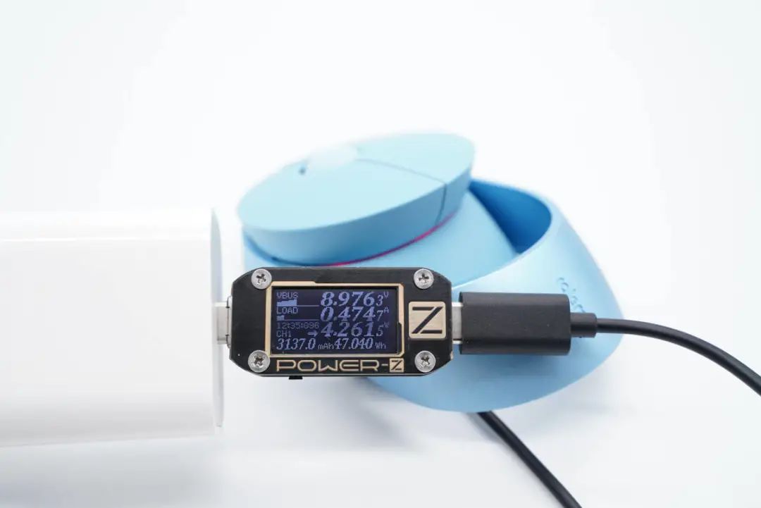 使用ChargerLAB POWER-Z KM001C可以測(cè)得此時(shí)無(wú)線充電輸入功率為8.98V 0.47A 4.26W。