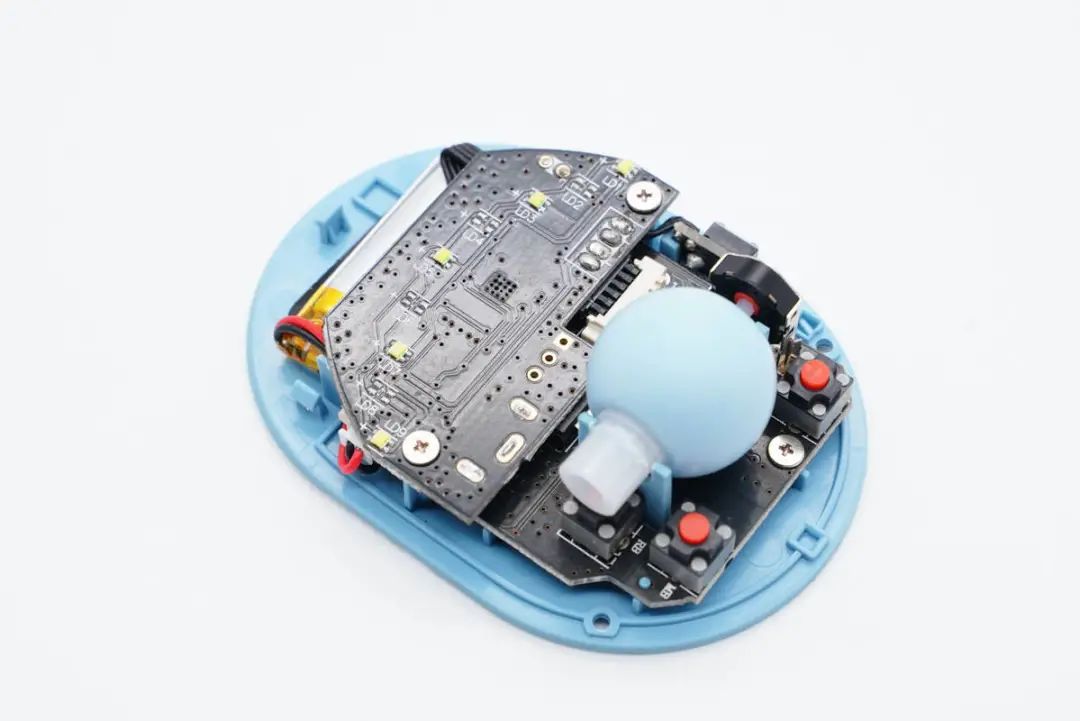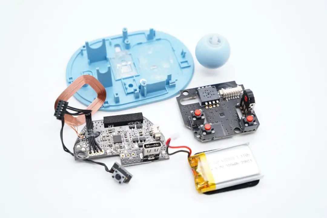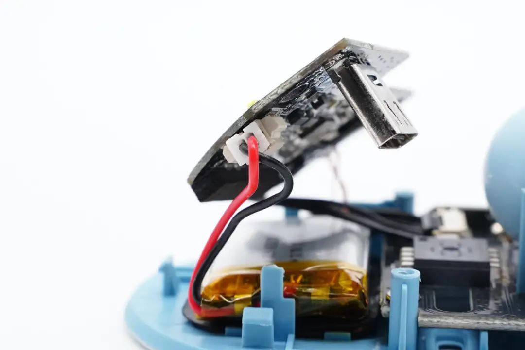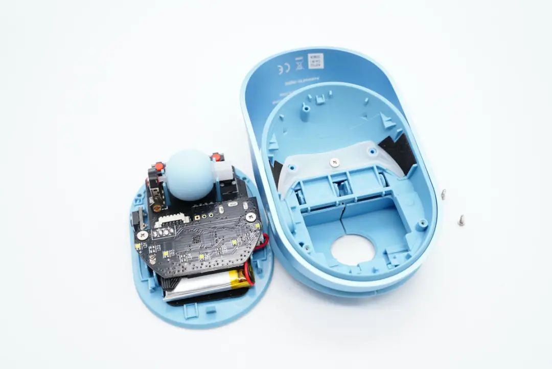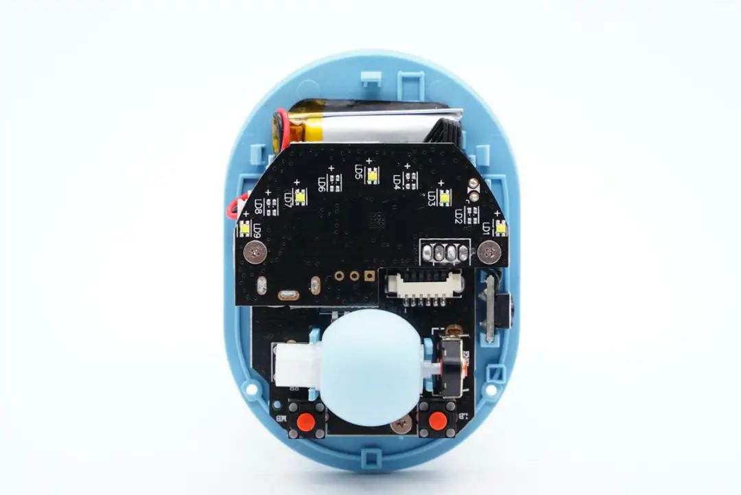 鼠標(biāo)內(nèi)部采用兩塊PCB板連接設(shè)計(jì),PCB板使用螺絲固定。