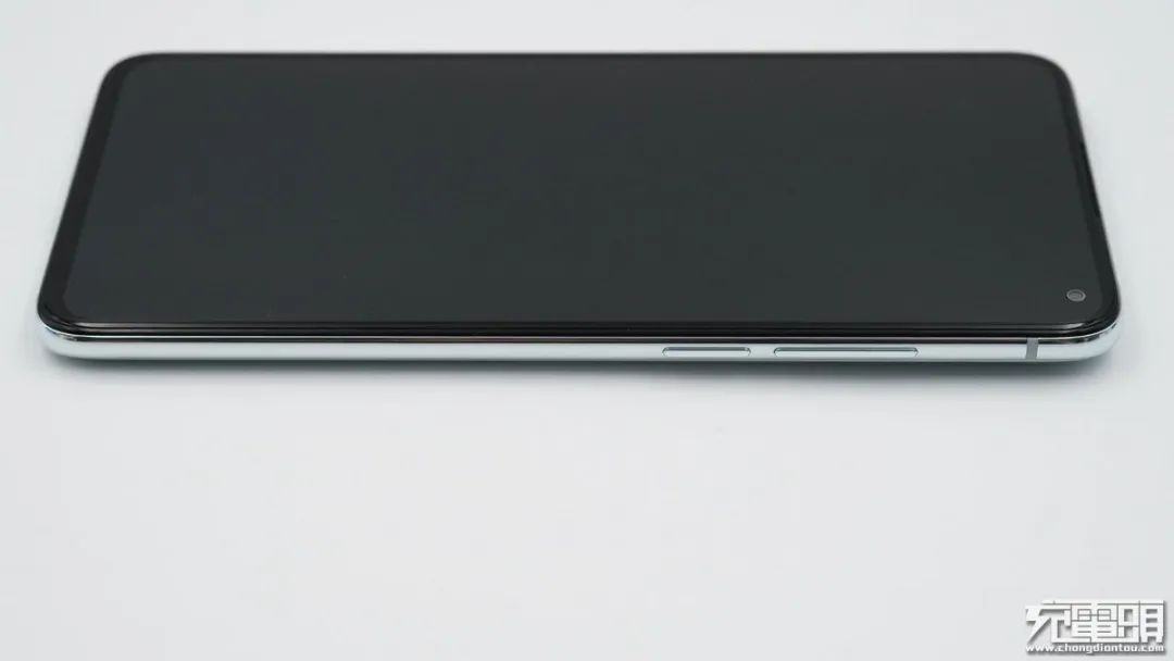 側(cè)身平緩弧面過(guò)渡使用手感好,此外側(cè)面還配有電源鍵和音量鍵。