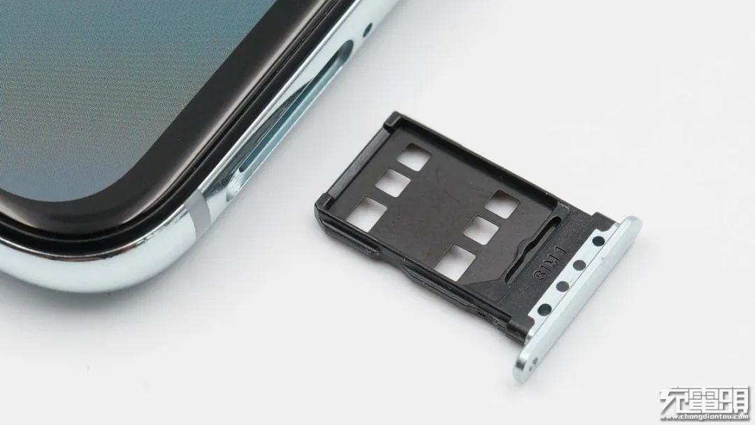 SIM卡座特寫,卡槽采用正背面設(shè)計(jì),支持雙卡雙待的同時(shí)節(jié)省空間。